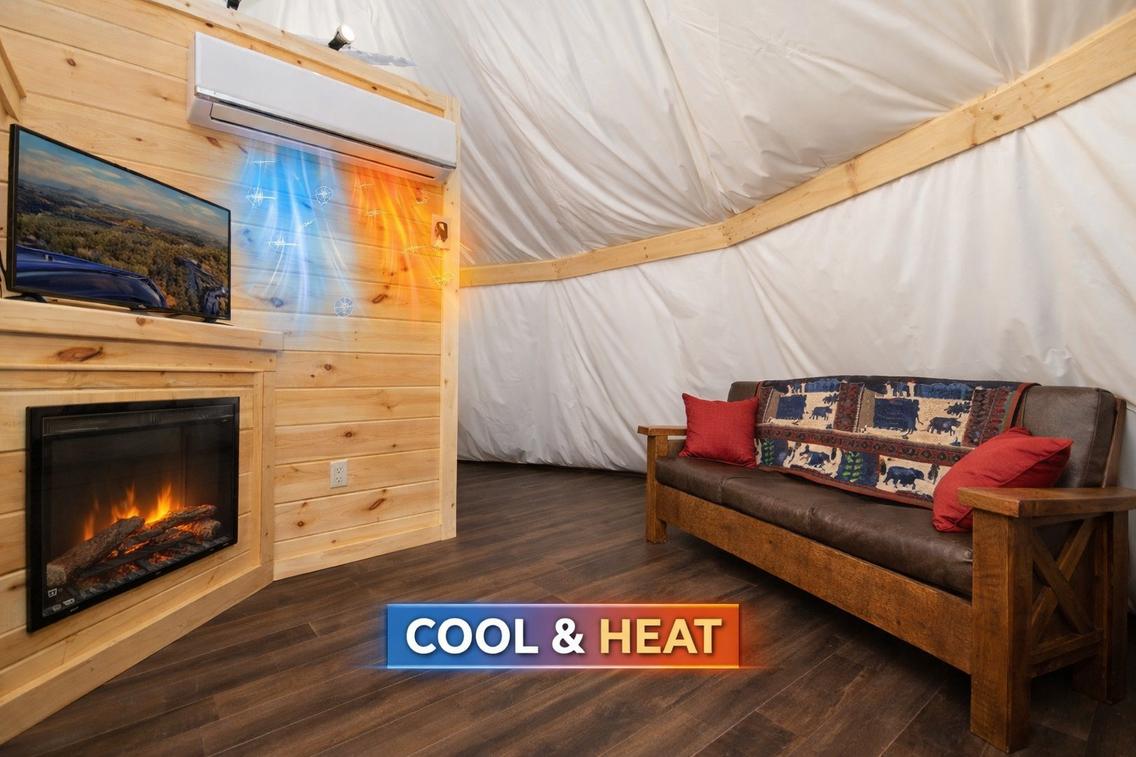 This wonderful tepee is perfect for families and loved ones. It is complete with a Queen size and Twin size bunk beds, mini split air conditioning an electric fireplace, wireless internet access, a flat-screen TV, a full bathroom, pool access, access to an 18-hole putt-putt course, hiking trails, and other Parkside Resort amenities.